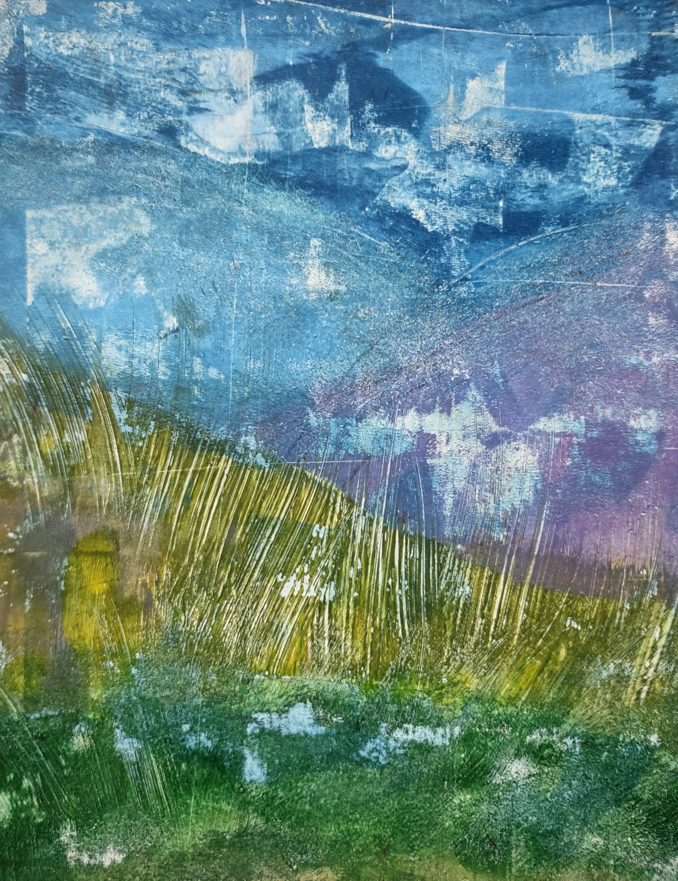 This gallery features a selection of my recent creations, each reflecting my evolving artistic journey. Unless noted otherwise, all pieces are made with acrylic paint on paper using a monoprint technique known as gel printing.