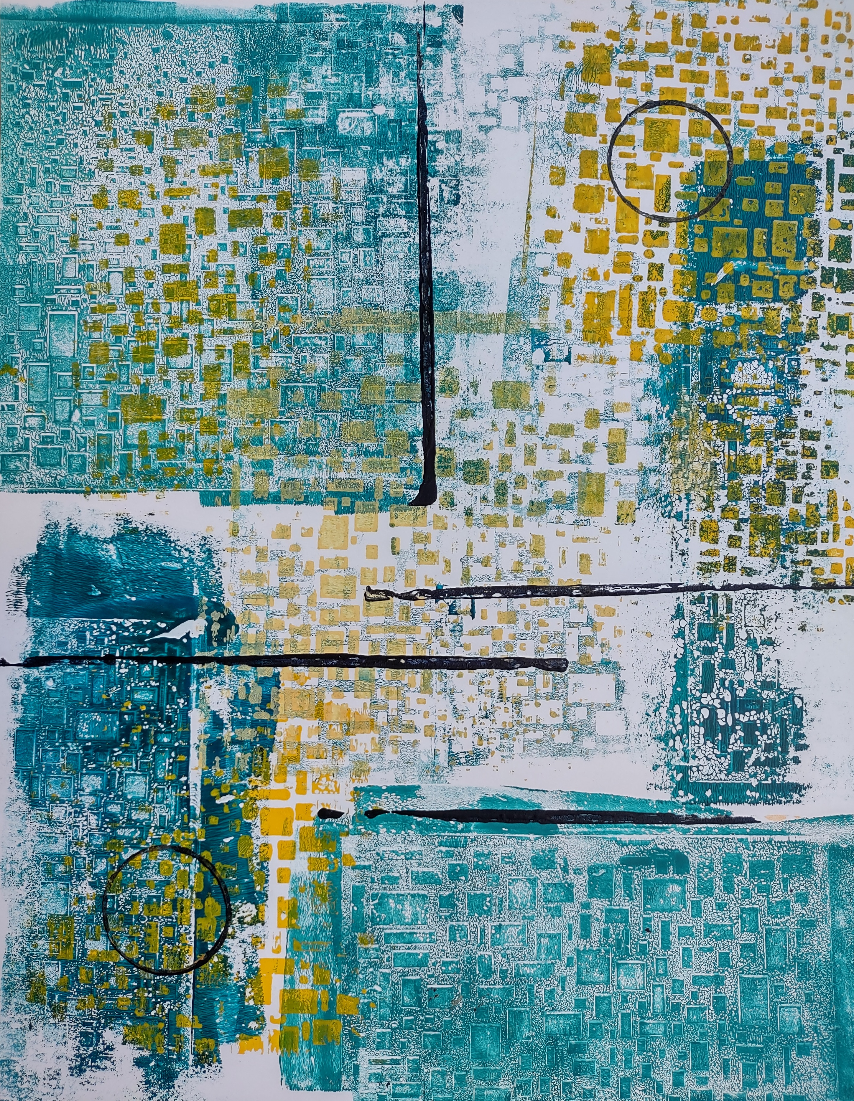 Over the past year I set my writing aside to expand my creative outlet to include the visual arts. I began in watercolor and have now moved to a mono printing process called Gel Printing. I have become obsessed! Don’t get me wrong…writing is still an important part of my life, and you can still find my wordsmithing mostly on my other blog, AbitraryDustBunnies. My excitement for gel printing has prevented me from keeping up to date here, and now you know why.